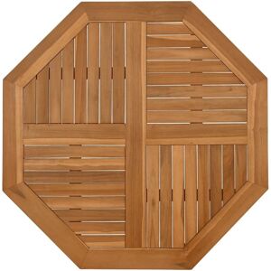 Give a new life to your garden table with this wooden table top. It is an excellent solution for freshening up your table. Solid teak wood: Solid teak wood is a beautiful natural material. It has been seasoned, kiln dried and then fine sanded to give a very smooth appearance. Teak wood is known for its exceptional strength and weather resistance. Versatile applications: The replacement table top can be combined with different bases according to your needs. Parasol hole: There is a parasol hole in the table top so you can easily attach a parasol to create a shady spot. Rustic design: With a simple and clean look, the wooden furniture top will add a rustic charm to your dining areas. Easy-to-clean surface: The smooth tabletop is easy to clean with a damp cloth. Good to know: Each item is unique with variations in colours and grains. The delivery is random, ensuring the exclusivity and individuality of your product. Material: Solid teak wood with waterbase finish Dimensions: 90 x 90 x
