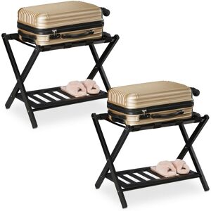 If you're somebody who travels often, then this stable wooden luggage stand is perfect for helping you pack and unpack your bags. With this luggage rack, you can access your luggage comfortably while sitting down. Assembling the suitcase stand is easy and quick thanks to the included mounting materials and instructions. When not in use, simply store the iron tidy away and save space. This suitcase stand in a 2x set is a must for hotels and B&Bs, who want to provide their guests with maximum comfort. Suitcase Stand in Detail - Total dimensions H x W x D: approx. 54 x 66 x 45 cm- Dimensions when folded H x W x D: approx. 69.5 x 66 x 11 cm- Lower shelf W x D: approx. 57 x 31 cm- Maximum load capacity: each approx. 30 kg- Weight: each approx. 2.8 kg- Material: Wood, PP- Colour: Black Foldable Luggage Rack for Suitcases and Bags - Comfortable and easy packing of suitcases- Suitcase butler is a practical helper both at home and whilst travelling- 2x set ideal for hotels, B&Bs or holiday