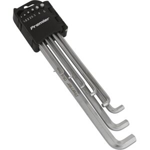Sealey Premier Extra-Long Stubby Element Hex Key Set 9pc Features: Manufactured from heat treated and hardened Chrome Vanadium steel with satin polished finish. Keys range in length from 90mm to 230mm and in size from 1.5mm to 10mm. Stubby offset hex elements allow access in confined spaces. Supplied in easy-access case for safe storage and quick key selection. Technical Details: • Manufactured from heat treated and hardened Chrome Vanadium steel with satin polished finish. • Keys range in length from 90 to 230mm. • Stubby offset hex elements allow access in confined spaces. • Sizes: 1.5-10mm. • Supplied in easy-access case for safe storage and quick key selection. • Lifetime guarantee*. • Model No. AK7174 • Model No. AK7174 Additional Information: • One of a comprehensive range of Premier Hand Tools, suitable for daily professional use. • Manufactured from heat treated and hardened Chrome Vanadium steel with satin polished finish. • Keys range in length from 90mm to 230mm. • Stubby