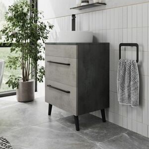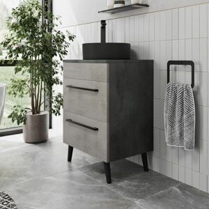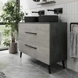 Exquisitely designed ceramic basin Your bathroom needs to be functional but that doesn’t mean it can’t be beautifully functional. With our Vitusso , you won’t need to worry about form or function because these gorgeous vitreous china basins are the perfect blend of both. With its smooth round shape, it’s purpose-made for the vanity unit and a match made in heaven. Real concrete look with complementing anthracite These two-tone units feature a raw grey concrete colour across the front and a beautifully matched anthracite colour across the sides, top and bottom. Both are textured to touch and made from a waterproof melamine veneer, which keeps the hugely durable particleboard free from moisture. Silent soft close drawers What’s that you hear? Nothing you say? That is absolutely right! The soft close drawers on the Vitusso units are so smooth and quiet you’d hardly know you’d opened or closed them. High-quality metal runners ensure a seamless movement meaning that the days of clunky,