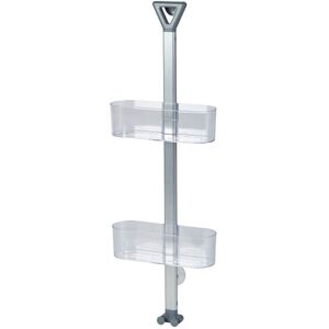 The Showerdrape Elements Clear 2-Tier Basket Hanging Shower Caddy is ideal for organising all your bath and shower essentials. It features two clear acrylic baskets mounted on an aluminium upright. This bathroom organiser conveniently hangs over the shower screen and includes a small adjustable knob at the back to stabilise it. Additionally, there is a suction cup at the bottom for extra support. Each caddy is adjustable in height and designed with drainage slats. The Elements shower caddy also includes two hanging studs for sponges or cloths. Dimensions: 70 (H) x 25 (W) x 8 (D) cm. Weight: 0.71kg.