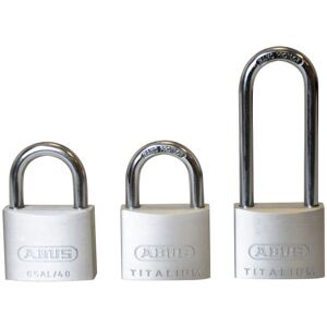 The ABUS 64TI Series TITALIUM™ Padlocks are ideal for medium to high risk of theft, recommended for a wide range of security requirements. All models in this series have a paracentric keyway and chrome plated cylinder cores. Hardened steel shackle, 30mm and above, with NANO PROTECT™ shackle coating which assures security and high corrosion resistance. TITALIUM™ is based on a special aluminium alloy, a mixture of materials is created which is extremely durable and lightweight; similar to the process used in aircraft construction. Compared to classic brass padlocks, the locks in the TITALIUM™ series are around 30% lighter but feature the same level of security making them excellent value for money. Sizes: 20 to 25mm, ideal for securing bags, suitcases, jewel cases, tool boxes, etc. Sizes: 30mm and up, ideal for securing valuables/goods of medium value or at an average risk of theft.The ABU64TI4063T set of 3 Titalium Padlocks comprises 2 x ABUS 64TI/40TITALIUM™ Padlocks, with the following specification: ABUS Security Level: 5. Shackle Width: 22mm.Shackle Height: 23mm.Shackle Diameter: 6mm. Overall Width: 40mm.Overall Height: 62mm.Overall Depth: 15mm. 1 x ABUS 64TI/40HB63 TITALIUM™ Padlock, with the following specification: ABUS Security Level: 5. Shackle Width: 22mm.Shackle Height: 63mm.Shackle Diameter: 6mm. Overall Width: 40mm.Overall Height: 102mm.Overall Depth: 15mm.