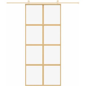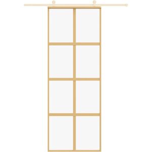 This sliding door creates a graceful transition from one room to another. It provides the perfect solution for saving space. Stable material: The aluminium frame and ESG panels add extra stability. Modern design: With a transparent glass, it allows plenty of light to your room.Safe and quite: Thanks to the door's soft stop to stop the door, it can be opened and closed quietly when you open and close by triggering a buffer. Note: Hanging wheels and top sliding rails are not included in the delivery.The door can only be mounted in combination with sliding door hardware kits. You can find the matching sliding door hardware kits in our shop (SKU: 145262, 145263), which need to be purchased separately. For the installation way, you can check our installation manual of the door and sliding hardware kits. Symple Stuff Door Size: 205cm H x 76cm W x 5cm D, Finish: Gold