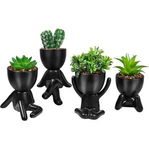 [Interesting Potted Succulents Design]These cute plant pots come in different poses and colors, adding a lively touch to your home or office decoration. Some sit , some raise their hands, some relax, some shy - all with and special sure to impress. (plants not included) [PERFECT SIZE AND GIFT FOR PLANTS LOVERS], These are great gifts for plant lovers. They are versatile and can be used to decorate desks, bookshelves, tables, windowsills, countertops and more. Plus, they come with faux plants! [Artistic Home/Office Decoration]These pose head vase are elegantly designed to add of art and joy to your living space. These pots are carved in the shape of a small human body with a basin head, making them a and eye-catching addition to any room. tip: pot only does not contain plants Material: ceramics colour: black Package Contents: 4 x Character flowerpot Only the above package content, other products are not included. Note: Light reflection and different displays may cause the color of the