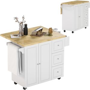 Organize your kitchenware, dinnerware, and other utensils with this kitchen island cart. Including a large cabinet, three drawers, this kitchen island offers you lots of storage space and helps you keep everything organized. Four wheels make the movement easier. This kitchen island comes with a drop-leaf which offers your extra space, suitable for dining and drinking. Take the hassle out of running around when this HOMCOM kitchen island cart has everything you need in place. Specifications: ● Color: White ● Material: MDF, Rubber Wood ● Overall Dimension: 111.5W x 45-75D x 89Hcm ● Countertop Dimension: 91L x 45-75Dcm ● Cabinet Inner: 54.5W x 37.3D x 77Hcm ● Drawer Inner: 22W x 30D x 13Hcm ● Weight Capacity: 50kg (Overall), 20kg (Top), 5kg (Drawer/Shelf) ● Item Label: 801-173 Just so you know: this item ships and arrives in separate boxes. Delivery times may vary with each box. Box quantity: 2 Features: ● 2-door cabinet, 3 drawers offer a multifunctional storage solution ● Get extra