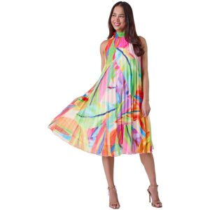 Tropical Print Halter Neck Chiffon Dress from Roman. Head to the tropics with this tropical print halter-neck midi dress. A sleeveless style made in a fluid chiffon fabric in summer vibe hues, this dress features a halter-neck and falls to a hi-lo frill floaty hemline. Wear with sandals for comfortable hot weather wear, or dress up with heels and sparkly jewellery for an extraordinary special event ensemble this spring-summer. Roman Women's Tropical Print Halter Neck Chiffon Dress in Pink Size: 18