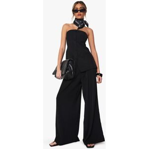 High neck design creates a sophisticated silhouette Wide leg cut offers effortless movement and comfort Cap sleeve styling adds a contemporary touch Linen look fabric provides texture and visual interest Subtle side gathering enhances the waistline definition Make a striking entrance in this elegant high neck jumpsuit from Boohoo. The wide leg silhouette creates a dramatic sweep whilst maintaining a thoroughly modern aesthetic. Perfect for evening soires, this piece can be styled with metallic accessories as shown - try a statement clutch and stacked bangles for maximum impact. The clean lines and minimalist design make it ideal for nights out in the city, whether you're heading to an upscale cocktail bar or dancing until dawn. For cooler evenings, layer with a cropped jacket or tailored blazer. The versatile design transitions seamlessly from drinks with friends to more formal occasions, simply by switching up your accessories and footwear. Complete the look with strappy heels and bold earrings for a truly head-turning ensemble.
