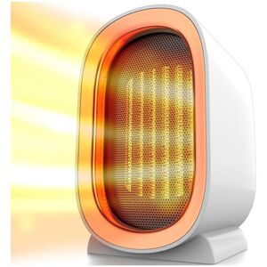 Ceramic Heater Elements: Ceramic portable space warmer combined with the efficient fan to heat up apartment faster, produces warm without open coils. Power adjustments:1200W Overheat & Tip-Over Protection: "Overheat Protection" automatically shut off of the warmer at temperature 149°F and "Tip-Over Protection" prevents personal heater from tipping-over if you have a dog, cat or child Small & Portable: Our space heater for indoor use - house, bathroom, bedroom, desktop, and for outdoor - garage. Heated area - 170 sq. ft. This personal heater can be used all year round, greatly saving you in any season Low Noise: mini heater noise is -30 dB (quieter than a laptop), quiet fan provides comfort warm air in the living room, without any distracting sounds! Small Blower makes heat flow on the floor, table or bed Flame Retardant Material: made of high-quality heat plastic avoiding any fire hazard, and the craft is - 1.5 pounds. Blue safe small space heater for every day Plug Type:US Plug, it