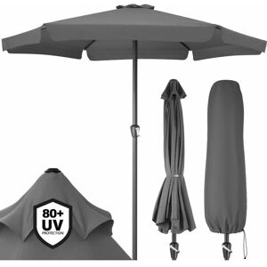 Huge 330cm parasol XXL with protective cover and smooth crank system! The huge 330 cm wide aluminium parasol with UV 80+ protection and matching umbrella cover can be opened and closed quickly and easily thanks to the smooth crank system . The umbrella covering is made of water-repellent polyester . This makes the parasol your perfect companion throughout the summer. The robust 48 mm thick mast is made of lightweight aluminium and can be practically disassembled into 2 parts for space-saving transport, ideal for storage over the winter months. The valance attached to the end of the umbrella not only looks decorative, but also protects you for longer when the sun is low. The wind opening on the top of the umbrella ensures greater stability, as air coming from below can escape upwards, thus ensuring greater stability. You will always find a shady spot under this luxury parasol on hot days. Product Details: - UV protection 80+ - Umbrella cover included - Water-repellent covering - Crank