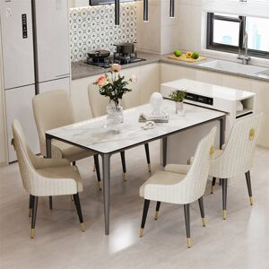 This 63" modern dining table is sure to bring both fashion and function to any dining room and commercial banquet. The sleek, smooth sintered stone with tempered glass top is scratch and heat resistant, allow for easy cleaning, making it perfect for daily use and festive gatherings. Two shaped sturdy base provides an ultra-contemporary look while ensuring the overall stability. Ivy Bronx
