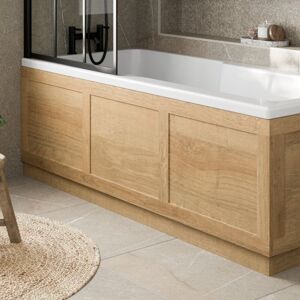 Now you have chosen your perfect Aquari bath, have a look at our stylish range of bath panels. We offer a wide range of colours, styles and sizes so you can be sure to find one to suit your bathroom. An front bath panel is used when you are looking to install your bath into an alcove where only one side will be on display and is ideal for hiding the pipework underneath your bath. What's Included: 1700mm front bath panel Please note: an end bath panel is not included Features and Benefits: Front bath panel so used when installing a bath into an alcove Stylish panelled design with an oak veneer finish Will complement any style of bathroom decor Helps to hide the underside of your bath Features a durable, 15mm thick MDF construction A end panel is not included but is available to purchase separately Suitable for use with straight baths CE marked product Includes a 150mm high plinth Dimensions (excluding plinth): 1700mm (W) x 445mm (H) x 15mm (D)