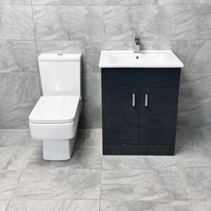 Tess Anthracite Square Vanity Unit Ceramic Basin & Bliss Square Toilet Set Tess Anthracite 550mm or 650mm Vanity Basin Unit A choice of 550mm or 650mm basin unit Including high quality ceramic 1 tap hole basin Gloss front and sides Soft close doors With chrome finish handles Contemporary style With internal shelf for creating extra bathroom storage Basin unit and WC unit can be placed together as one set or separately on different walls Manufactured in Europe Including concealed cistern 550 Basin unit sizes approx: Width: 550mm Depth: 465mm Height: 830mm 650 Basin unit sizes approx: Width: 650mm Depth: 465mm Height: 830mm With Bliss square closed back toilet A contemporary minimalist square design toilet. Bliss contemporary square style toilet Close coupled WC pan & cistern Dual flush Short projection High quality ceramics Including soft close WC seat Toilet sizes approx: Width: 352mm Depth: 610mm Height: 785mm Optional Francis Pegler Xtreme basin mixer tap can be added at extra cost