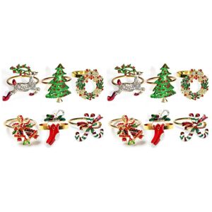 12 Christmas Napkin Rings, 12 Different Styles, Plenty of Quantity and Variety of Styles, Can Well Meet Your Use Needs, You Can Choose According To The Style Or Color Of The Napkin RELIABLE MATERIAL: These Christmas napkin holder rings are made of high quality metal, smooth and shiny, reusable and Diverse styles: These 12 different styles of Christmas napkin rings are designed with a variety of classic Christmas elements, such as Christmas tree, reindeer, Santa Claus, , etc., are extra delicate and can be used in table settings and accessories Suitable Occasion: These Christmas napkin holder rings can be used for Christmas, New Years, weddings, anniversaries, Christmas parties, celebrations, graduations, banquet events, everyday table decorations or other occasions color:Photo color Material:Metal Package Contents: 12 x Christmas napkin rings Only the above package content, other products are not included. Note: Light reflection and different displays may cause the color of the item
