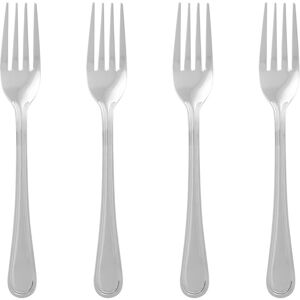 This set of forks is made from corrosion resistant stainless steel. All forks in the set have tapered handles that make them comfortable to grip, with a sleek threaded decorative detail that adorns their sides and rounded tips. Lightweight and dishwasher