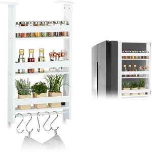 This compact rack is a wonderful storage solution for small kitchens. It can be simply attached to the side of the fridge thanks to its 2 stable anti-slip surfaces. On the 3 large shelves you can store spices, oil, kitchen utensils as well as cups and mugs. For a safe storage, the shelves are secured so that your utensils remain in place always. Moreover, this kitchen rack features a suspension rail. This has 5 robust hooks made of iron, ideal for cups, mugs & cooking spoons. Hanging Spice Rack Details - Total size H x W x D: app. 74 x 42 x 20 cm - Size shelf W x D: app. 36.5 x 9 cm - Distance btw. shelves: app. 21 cm -Suspension rail app. 36.5 cm - Hooks H app. 12.5 cm Kitchen Organiser - Capacity per tier: app. 3 kg - Hook capacity: app. 200 kg - Weight: app. 3.1 kg - Material: MDF, Stainless steel - Colour: White Compact Suspended Shelves - Compact storage solution for kitchen - Spice rack can be hung to fridge - Display for herbs, oil, jars and more - 5 hooks for oven cloths and