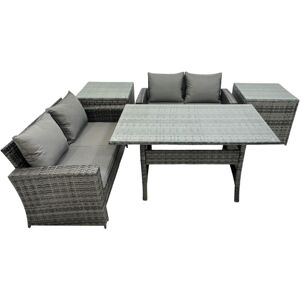 This rattan outdoor furniture set is a great addition to patio or garden, made of high quality PE rattan and durable galvanized steel construction for sturdiness and long lasting.Durability,and this garden furniture set can be put Outdoor all year round. Set Dimensions: • 2 x Side Table Size: 65L x 65W x 66H cm • 1 x Dining table size: 140L x 80W x 70H cm • 2 x 2 Seater sofas size: 124L x 70W x 74H CM Dark grey mixed rattan with dark grey fabric .Color may some difference due to light or monitor .we are unable to return the item due to color problem. Items Comes Flat Packed And Easy Assemble,Sturdy Galvanized Steel Tube Metal Frames With Powder Coating To Prevent The Rust Flat PE Rattan Completely Made By Hand, 5mm Thickness transparent Tempered Glass With Sucker On Surface To Prevent Sliding Low Maintenance ,Removable Cushion Cover And Easy Move To Different Place.Pls Keep the Cushion Indoor Or put on With Rain Cover When Not In Use . Keep The Furniture With Rain Cover If Not Use For