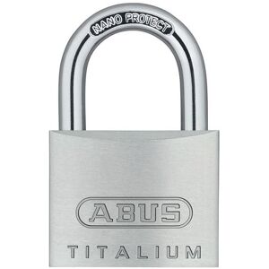 This ABUS 64TI/40 TITALIUM™ Padlock has the following specification: ABUS Security Level: 5. Keyed Alike Key Reference: KA6411. Shackle Width: 22mm. Shackle Height: 23mm. Shackle Diameter: 6mm. Overall Width: 40mm. Overall Height: 62mm. Overall Depth: 15mm. The ABUS 64TI Series TITALIUM™ Padlocks are ideal for medium to high risk of theft, recommended for a wide range of security requirements. All models in this series have a paracentric keyway and chrome plated cylinder cores. Hardened steel shackle, 30mm and above, with NANO PROTECT™ shackle coating which assures security and high corrosion resistance. TITALIUM™ is based on a special aluminium alloy, a mixture of materials is created which is extremely durable and lightweight; similar to the process used in aircraft construction. Compared to classic brass padlocks, the locks in the TITALIUM™ series are around 30% lighter but feature the same level of security making them excellent value for money. Sizes: 20 to 25mm, ideal for