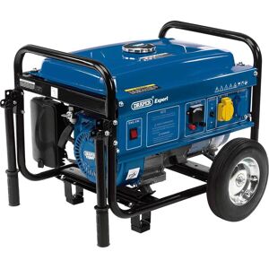 This open frame generator is powered through a high-quality 196cc petrol engine protected by a heavy duty steel tubular frame. Attached is an easy pull recoil start mechanism. This petrol generator delivers dual voltage output of 230V/110V and 12V DC output. It is fitted with oil and fuel resistant anti-vibration mounts and two large robust rubber wheels for ease of mobility. Supplied with a spark plug spanner, combination spanners and 12V charging lead. Compatible with E5 and E10 fuel. Features and Benefits • Powered by 4-stroke engine • Easy pull recoil start • Steel tubular frame • Dual voltage output 230V/110V • 12V DC output • Fitted with oil and fuel resistant anti-vibration mounts and two wheels • Supplied with 12V charging lead and basic toolkit • Compatible with E5 and E10 fuel Specifications Maximum AC output: 2,700W (3.38kVA) Rated AC output: 2,500W (3.13kVA) Sockets: 1 x 110V 16A, 1 x 230V 16A, 1 x 12V DC Engine type: Forced air cooled four cycle OHV Engine capacity: 196cc Petrol Engine output: 6.5HP Fuel tank: 15L Continuous run time: 11 hours at 75% load Noise: 96dB(A) Oil capacity: 0.6L Oil: SAE 10W-40 (available separately) Dimensions: (L) 620 x (W) 450 x (H) 460mm Weight (net): 40kg Contents 1 x Spark plug spanner 1 x 12V Charging lead 4 x Spanners