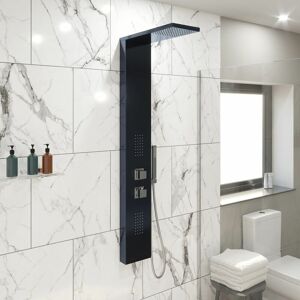 have been designed to give you a tranquil spa-like showering experience whilst creating a statement piece for your bathroom, all without the hefty price tag. The stylish panel hides all pipework and fixtures, creating a neat and minimalistic look with anti-scald technology to give you a shower that is safer for the whole family. feature a large luxury overhead drencher, revitalizing body jets, and a practical hand shower that is all cleverly incorporated into one panel. Large luxurious overhead drencher This shower tower features a fantastic large drencher that is positioned overhead. The showerhead has a sleek square neck design with a modern rectangular shaped head, providing an excellent flow of water that covers your entire body to give you a truly indulgent rainfall showering experience. for flexibility Get the most out of your shower tower with this extremely practical with a modern square edge design. Giving you more flexibility, the handset is attached by a 1.5m flexible hose