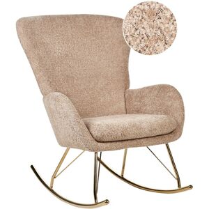 Modern Boucle Fabric Rocker Chair. Brighten up any interior and make it stand out with this elegant rocking chair. Made out of high-quality bouclé fabric, the piece is very soft and pleasant to touch, which makes it a wonderful addition to a nursery, living room or a larger bedroom. Additionally, it is very durable and doesn't require daily maintenance. Its white colour perfectly matches with gold, metal skids. As the chair features a large backrest and wide seat, it will be a perfect companion for unwinding after a long day. Details: Product Type: Rocking Armchair Style: Retro General Color: White, Gold Material Type: Fabric Main Material: Boucle Additional Material: Metal Filling Material: Foam Legs material: Metal Seat Material: Boucle Material Composition: 100% Polyester Arm Style: Track Armrests: Yes Leg Caps/ Pads: No Pattern: Solid Reclining: No Seat Construction: Plywood Seat Foam Density: 28 kg/m3 Dimensions: Armrests Height: 60 cm Depth: 99 cm Seat Thickness: 9 cm Seat