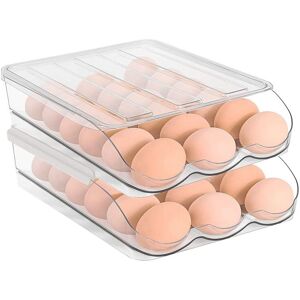 Rolling Egg Tray - The egg holder adopts a slope design. When you take out the front egg, the back egg automatically roll forward.Easy pick without removing the lid. Stackable - The egg container includes a stacking collar permitting multi-stacking.One layer holds up to 18 eggs,2 layers stackable design to help maximize your space and provide 36 eggs max capacity. Easy Clean - Remove lid allows you add or remove layer according to your refrigerator space and daily need.Clean the tray with warm water and wipe it with a soft cloth. Clear & Visible - Clear egg tray design,for easy visibility-never run out of eggs again.Our egg storage for fridge, freezer, pantry, refrigerator, kitchen cabinets, table, restaurant, capacity,camping and picnic. Safety and Environmental Protection - Made of food grade material, can stackable storage, neat and beautiful, space saving, keep refrigerator organized and clean, convenient and practical. Type:2 Layer Colour:Transparent Material: plastic