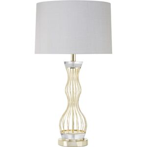 Create a calming atmosphere and make your room look aesthetically pleasing with this table lamp by Premier Housewares. The lamp boasts a wireframe structure with a sleek gold finish. The lamp is constructed from materials of the finest quality and will last a long time. This contemporary lamp stands on a slim metal base with a reflective silver finish that counterpoints the white shade. The tapered shade is made from soft fabric that diffuses the light softly when the lamp is lit. This contemporary table lamp with its wireframe structure and elegant shade will look fantastic in any setting, be it your living room, bedroom, study or office. Handle the lamp carefully and wipe clean with a soft cloth. The dimensions of the product are width 41 cm x depth 41 m x height 75 cm. Features of the product include: -Premium quality -Sturdy and durable -Tapered shade -Wireframe structure -Gold finish -Slim metal base -Contemporary design -Elegant and chic So don't wait any longer and get your own