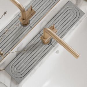Please measure before purchasing. Dimensions: Overall dimensions (L x W x H): 60 x 10 x 1 cm, with a center hole diameter of 6.5 cm. Make sure there is nothing around the faucet and sink, a clearance of 60 x 10 cm. Quick drying: The small holes in the diatomite stone allow for incredible water absorption, quickly absorbing splashes and drying automatically in minutes. Say goodbye to annoying drips and keep everything dry. Forget messy countertops: Suitable for use as an absorbent mat for soaps, cups, soap bottles, dish sponges, lotions, and anywhere you need to quickly absorb water, keeping your countertops drier and tidier. Enjoy its durability: Requiring minimal maintenance, our quick-drying stone sink caddy is built to last. Its absorbency can be restored with the included honing tool, proving its durability. Modern and elegant: Designed for the modern home, our stone drying mat combines aesthetics and functionality to impress guests and keep your sink clean. Not just a stone