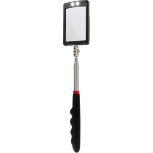 Practical - Telescopic mirror with double ball joint and LED lighting - Also ideal for heat measurements and geocaching For illuminating dark and inaccessible places - Bright white LED Only ultra-flat mirror 10 mm high - Extendable from 28 to 88 cm - Non-slip handle for a secure hold 28.5 cm telescope - Extendable up to 87.5 cm in length - Mirror dimensions: 65 x 40 mm - Mirror housing: 85 x 55 mm - Depth: 10 mm - Two parallel ball joints for maximum freedom of movement With 2 2032 button batteries - Low battery consumption - Long LED lifespan (approx. 50,000 hours)