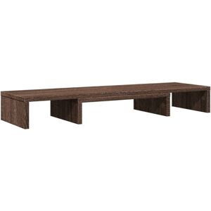 Enhance your workspace with the adjustable monitor stand for better viewing comfort and style! Stable and durable material: Engineered wood is a durable and stable material with a smooth surface that is resistant to moisture, warping, and splitting, making it a reliable choice for various projects. Customisable length: By extending the two larger monitor stands, this configuration maximizes the overall stand's length, offering a spacious platform ideally suited for two monitors. Customisable viewing angle: By adjusting the angles of the two larger stand risers, you can find the perfect viewing angle for reduced strain and increased productivity. Additional storage: The lower section includes ample storage compartments, offering generous space to neatly organize books, notebooks, keyboards, and accommodate a laptop. Easy maintenance: Thanks to its smooth surface, the computer monitor stand is easy to clean with a damp cloth and requires less maintenance. Colour: Black oak Material: