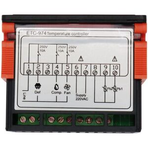 Model: ETC-974 Temperature measure range: probe:-50-110°C(-58-230°F); PTC probe:-55-140°C(-67-284°F) Display resolution: 1°C/0.1°C(with the swithch mode between integer and decimal) Accuracy: :±0.5°C(-30°C-50°C);other±1°C. PTC:±1°C(-30°C-50°C); other±2°C Probe type: (-50°C-120°C); PTC(-50°C-150°C) Power supply:230VAC±10% ;50/60Hz Rated current of the relays(refrigeration ,defrost and fan):8A/220VAC Use temperature:-5°C-55°C Relative humidity:10%-90%RH (not condensing) Storage temperature:-30°C-85°C Input: sensor Sensor lenth:2M(include the probe) : Temperature Controller Display Type: DIGITAL Usage: Household Power Type: Charger Style: Standing and Wall Hanging Display Size: 1.9 Inches & Under color:Black Material:plastic size:77 x 34.5 x 58mm Package Contents: 1 x ETC-974 Digital Temperature Controller Only the above package content, other products are not included. Note: Light and different displays may cause the color of the item in the picture a little different from the real