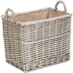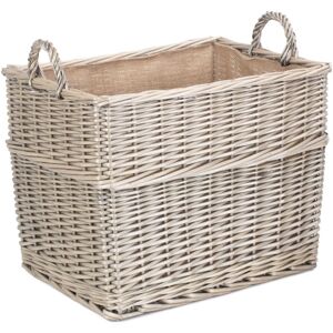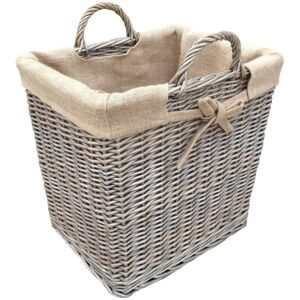 Full buff antique wash willow log basket with removable hessian lining. Attractive looking . High Quality, Well made Basketware. Natural product so dimensions can vary slightly. Manufactured from sustainable materials. Colours and finish could vary. Size Depth 40 x Height 31 x Width 40cm Weight 5kg Material Wicker Red Hamper Wicker Rectangular Log Basket with Lining in Brown