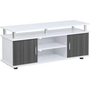 HOMCOM TV unit blends perfectly into your modern, simple lifestyle. It features the large top panel which holds up to 120 cm flat panel TV screen. There are also open display shelves to hold your entertainment equipment and two compartments with doors for your loose stuff such as CDs, DVDs, and games. Designed to be lightweight and space-saving. The cable management system helps you maintain a tidy entertainment space.