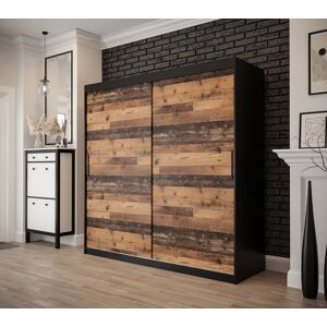 The Orkin sliding door wardrobe 200 cm is a spacious and elegant storage solution for your bedroom. This wardrobe features two sliding doors that glide smoothly to reveal a well-organised interior, complete with ten shelves and two hanging rails. The wardrobe is made of 16mm high-quality laminated board, which is durable and easy to clean. The dark oak finish and black plastic handle contrast its rustic wooden finish, enhancing its timeless style. The wardrobe also has optional drawers for purchase separately, giving you extra storage options. Alpen Home