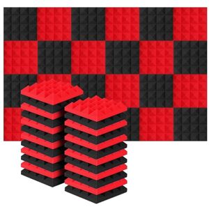 Sponge, no dust; Sound effects, suitable for studio and KTV, etc.; Square sound-absorbing sponge with beautiful appearance and good acoustic characteristics, its biggest feature is: thanks to its square shape, provides little diffusion, makes you sound more dynamic. It can, for example, combined with other products, consisting of an absorber, the effect is very . Applied to: Studio, piano room, drum room, anchor room, home theater, KTV, meeting rooms, instrument rooms, etc. Color: black + red Material: Polyurethane Size: about 25x25x5cm Package Contents: 24 x Acoustic Foam Only the above package content, other products are not included. Note: Light reflection and different displays may cause the color of the item in a little different from the real thing. The measurement allowed error is +/- 1-3 cm.