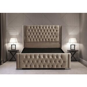 Mixing modern minimalism with a dash of flair, the Raoul bed range is nothing short of a showstopper. The tall, linear headboard features a central panel adorned with the classic Chesterfield pattern and framed neatly by two sleek wings. Raised slightly above the mattress, the footboard mirrors the Chesterfield design of the headboard and both are additionally upholstered with the highest quality foam to add extra comfort. The simple side rails neatly line the edges of the bed and the metal tube feet are the perfect final touch, with the gleaming silver acting as the perfect complement to the glamorous design. With generous, high-quality upholstery and meticulously crafted details, the Raoul bed range delivers sturdiness, practicality, and comfort wrapped in one, all while looking incredibly stylish. This bed is available in a range of on-trend colours in the ever popular soft velvet fabric. Etta Avenue Colour: Coffee, Size: Double (4'6)