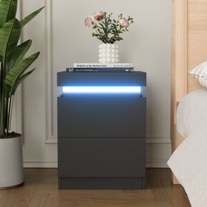 Features: 【Charging Design】The bedside cabinet has the LED light strip is equipped with a USB port, and the item has a charging function inside the slide top with 2 AC outlets and 2 USB Ports. Giving you more convenience when you devicing. 【Coloeful RGB LED Light】16 colors of adjustable LED lighting create a warm bedtime nook for your room. A slight of light in the dark protects your eyes while enjoying your mobile phone time. A portable remote control and APP control enable you to turn ON/OFF to erase night get-up concerns. 【Large Storage Space】Featured 2 spacious bedside drawers and 1 slide tabletop drawer, this side cabinet can store daily necessities like books, cups, alarm clocks, mobile phones, and so on. Keep your room more tidy and orderly. The groove design around the light strip make it's easy to place remote control or your phone here. 【Modern Design】 -- Flawless no-handle design makes it look easier but modern and fashionable, perfect for any home style. 【High-quality