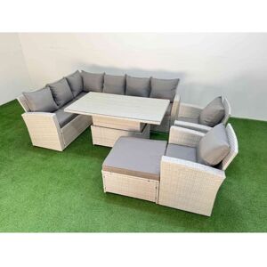 This patio corner sofa set can be used both indoors and Outdoor,with high quality PE rattan and durable galvanized steel construction for sturdiness and long lasting. Outdoor garden furniture can also be placed on the patio or balcony,The design of this rattan furniture is a perfect blend of country chic and modern minimalism, adding an elegant touch to your house. Set dimensions: •1 x 3 Seater sofa with two arm : 170L x 69W x 79H cm •1 x 3 Seater sofa with single arm: 160L x 69W x 79H cm •1 x rising dining table: 140L x 80W x 68/48H cm (height up 68,down 48) •1 x Big Footstool :65L x 65W x 34H cm •2 x Chair: 74W x 69D x 79H cm Light Grey Mixed rattan with dark grey fabric .Color may vary due to light or monitor .we are unable to return the item due to this problem .Please consult before purchase if you have requirment on color saturation. Table Can Be Used Both For Coffee Or Dining Table,Great Price Compared With Other Online Or Offline Store For Rising Table Set Items Comes Flat