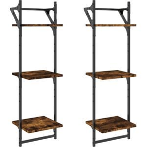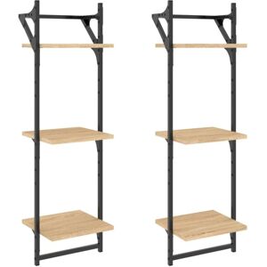 Maximise your interior space and turn your wall into style with these wall shelves! Sturdy material: The engineered wood is of exceptional quality with smooth surface and also features strength, stability and resistance to moisture. Practical design: The floating shelf offers storage space for keeping your decorative items well-organised and within reach. In addition, the bar can be used as a rack. This wall storage is part of the complete set of wall shelves, allowing you to create a beautiful combination by clustering various wall shelves together. Wall-mounted design: The display shelf can be wall-mounted to add extra storage space. That way, you can maximise your floor space and keep the area clean. Good to know: Screw(s) and plug(s) for inside the wall are not included. Seek and use screw(s) and plug(s) suitable for your walls. If you are uncertain, seek professional advice. Read and follow each step of the instruction carefully. Colour: Brown oak Material: Engineered wood, metal