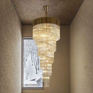 This Metro range comes from Prestige Lighting collection. The contemporary design of this 5 tiered ceiling pendant light combines a contemporary matt black finish with clear sculptured glass pieces. The long, angular shape of the glass looks amazing when the light is on or off. The Metro range has a traditional regal effect composed with modern materials to create a range suitable for either a modern or more traditional room settings. The whole range offers great diversity of finishes and variety of glass. Please call the office for more information. Please note, this item might be shipped on the pallet. Some shipping restrictions might apply. FEATURES: * Ceiling pendant light * Matt Black finish * Clear sculptured glass * Handcrafted * Earthed * 5 tiers * Requires 18 lights * Dimmable with suitable lamp / dimmer switch * Height adjustable prior to installation * Nett weight: 28.8 kg SIZE: * Min drop: 207cm * Max drop: 407cm * Body height: 182cm * Diameter: 50cm LAMP: * Requires 18 x Small Edison Screw LED Candle Lamps - NOT INCLUDED