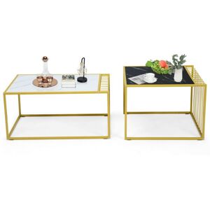 Bring this nesting table set home which strikes the perfect balance between aesthetic beauty and good practicality. Either being nested together or separated, it always delivers unique simple elegant design to enhance your home decoration. It can be used as a side table, end table, sofa table and more, according to your changing requirement in daily life. Meanwhile, it is the faux marble surface that makes the table set deliver unique looking design, which is also more lightweight than the real marble one. The square-shaped tabletop is wide enough to accommodate different kinds of items. Other features including sturdy metal structure, solid connection and easy assembly are waiting for you to discover. Don't hesitate to order it now! Anti-slip footpads protect your floor from being scratched Easy to assemble in short time, easy to clean with soft cloth Sturdy metal structure, not easy to rust or deform, with great stability Served as side tables next to the sofa, nightstand in a