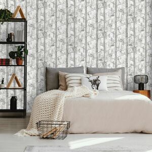 Holden Grizedale Grey Woodland Wallpaper If you want to transport nature right inside your home then this wallpaper is perfect for you! From Holden Grizedale is a beautiful woodland design featuring mica trees with squirrels and birds and subtle hand painted trees in the background, the ideal paper to give your home a calm and natural feeling Can be used as a feature wall effect or on all 4 walls for the full effect. Each roll measures 0.53m x 10.05m Washable Good Lightfast Offset Match 53cm/26.5cm Strippable