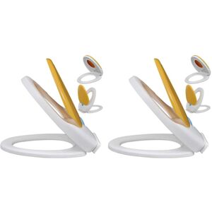 This highly practical toilet seat can be used by children as well as adults, therefore it's ideal for families with small children. It is suitable for all regular toilet bowls. The potty seat helps kids to get used to the toilet by alleviating their fear of falling into the toilet. The toilet seat features a soft-close function, which means it closes slowly and quietly. Made of strong polypropylene, the seat is very durable. It is also easy to clean and assemble. Delivery includes 2 toilet seats. With a soft-close function Colour: White and yellow Material: Plastic (PP) Overall size: 48.5 x 36.5 cm (L x W) Distance between the two hinges: 110-170 mm (adjustable) Mounting hole diameter: 13-20 mm With a potty seat Perfect for toilet training Suitable for all regular toilet bowls Easy assembly Delivery includes 2 toilet seats Note: Please check your toilet type and size before ordering. SKU: 275931 EU responsible party Haba Trading B.V. Mary Kingsleystraat 1 5928SK Venlo The Netherlands