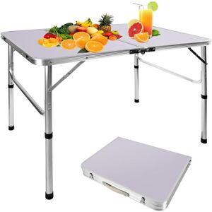 Picnic Folding Tables, 3ft Heavy Duty Aluminium Foldable Portable Adjustable Height Lightweight for Camping with Carry Handle for Indoor Kitchen, Dinner, Catering, Buffet and Garden (90x60x37/67cm). About this item: - 【Picnic Folding Tables Size】 Approx open size: Length: 3ft x Width: 2ft x Height: 1.2ft/2.2ft. Practical folds down to large briefcase size proportions (23.6x17.7x2.6inch). It can hold up to 50 kg approx. - 【High Quality Fold Up Desk】 Made from an aluminum frame, MDF table surface, the build is heavy sturdy, and easy to clean. - 【Easy to Carrry】 The table can be folded and locked and comes with a handle for easy transportation. The tables are easy to set up and fold away when not in use. - 【Easy to Clean】 The easy-to-maintain and durable smooth surfaces are very easy to keep clean. Durable and lightweight. Heavy-duty folding portable table with carrying handle. - 【Multi-Purpose】 Heavy-duty superior quality table is suitable for both indoor and outdoor use. Ideal for the