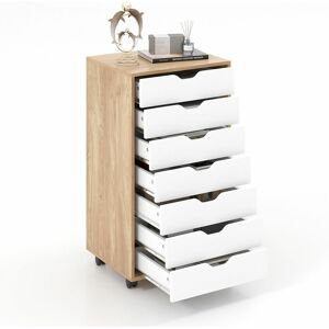 Combining aesthetics and practicality, this 7-drawer cabinet will be an ideal storage solution for your living room, bedroom or office! Made of durable engineered wood, this storage cabinet can be used for a long time. 7 large drawers provide ample storage space, which is very suitable for storing your documents, snacks, cosmetics, etc. Smooth sliding rails and user-friendly concave handles ensure easy access to items. This cabinet also features with four 360° swivel wheels which can be removed for stationary placement or installed for mobility. In addition, according to the clear instructions included, our 7-drawer cabinet can be easily assembled. Features: Crafted from durable P2 engineered wood for a long-term use Easy to move around with four 360° swivel casters 2 front casters with brakes to prevent tipping over Four wheels can be removed for stationary placement With 7 large drawers for snacks, cosmetics, office supplies, etc Features smooth drawer slides and concave handles for