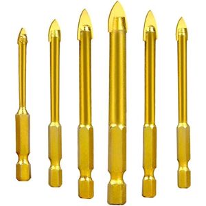 [High Quality] Made of hard alloy, this glass tip has excellent abrasion resistance and extreme hardness for longer service life, the titanium coated surface is anti-oxidation and does not fade. [6 Sizes] Glass drill bit with 6 different sizes: 3mm, 4mm, 5mm, 6mm, 8mm, 10mm, all with 1/4" hex bit fits perfectly for various tasks, this drill is marked with dimensions. [Precise and Smooth Hole] Excellent for making clean and precise holes in glass and tiles. The fine edge and hole are smooth and complete, without burrs. [Sturdy and Durable] Glass drilling tools with hex shank are fast and quick. Using water lubrication will greatly extend the life of the tip. [Wide Application] A must-have for DIY enthusiasts and home use for drilling ceramic mirrors with glass tiles and other rigid and fragile work surfaces.