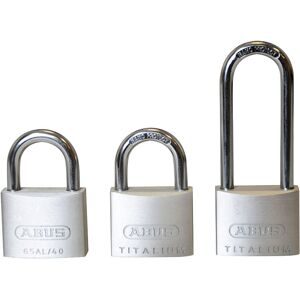 The ABUS 64TI Series TITALIUM™ Padlocks are ideal for medium to high risk of theft, recommended for a wide range of security requirements. All models in this series have a paracentric keyway and chrome plated cylinder cores. Hardened steel shackle, 30mm and above, with NANO PROTECT™ shackle coating which assures security and high corrosion resistance. TITALIUM™ is based on a special aluminium alloy, a mixture of materials is created which is extremely durable and lightweight; similar to the process used in aircraft construction. Compared to classic brass padlocks, the locks in the TITALIUM™ series are around 30% lighter but feature the same level of security making them excellent value for money. Sizes: 20 to 25mm, ideal for securing bags, suitcases, jewel cases, tool boxes, etc. Sizes: 30mm and up, ideal for securing valuables/goods of medium value or at an average risk of theft.This ABUS 64TI/40HB63 TITALIUM™ Padlock has the following specification: ABUS Security Level: 5.Keyed Alike Key Reference: KA6412. Shackle Width: 22mm.Shackle Height: 63mm.Shackle Diameter: 6mm. Overall Width: 40mm.Overall Height: 102mm.Overall Depth: 15mm.