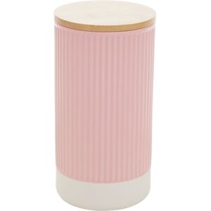 This canister in pink finish will bring an elemental feel to the kitchen with minimal design and cylindrical shape. Made from robust stoneware, this canister boasts a beehive effect, and the removable bamboo lid will keep its contents fresh and organised.