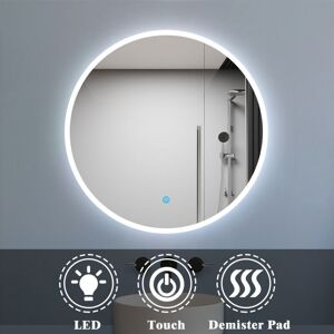 Biubiubath - Round Bathroom led Mirror 70cm Illuminated Bathroom Mirror Light with Demister+Touch Switch