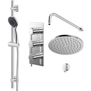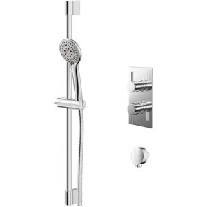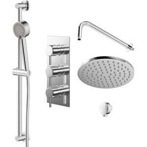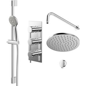 Model Number: WDB79578 Our Circo Polished Chrome Triple Thermostatic Valve Mixer Shower with Square Fixed Head and Tyne Shower Slide Rail Kit is the ideal shower solution for any new bathroom. This clever shower uses a triple shower valve to control the temperature as well as the square shower head and slide rail kit independently depending on your needs. Finished in polished chrome with a combination of round and square design to create a stunning ultra-modern look in your gorgeous new bathroom. Key features Valve Thermostatically controlled Built in Anti Scald Device Made from high grade engineering polymer Suitable for all plumbing systems Stylish chrome finish Needs 90mm - 100mm behind wall for fittings Shower Head Made from a high grade engineering polymer Lightweight for easy installation Strong pressure resistance High temperature resistance (to 85 degrees) High resistance to calcium build up Fixed Head and Wall Arm Comes complete with swivel to allow shower head adjustment