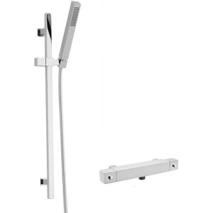 Features and Benefits: Includes shower valve and shower kit The perfect solution for quick, easy installation of your new shower system Provides everything you need for a 1 outlet showering experience Single outlet systems are the most popular solution used throughout homes Thermostatically controlled Bottom outlet Thermostatic control to +/- 2 degrees even if the water pressure fluctuates Full thermal protection to prevent scalding in the event of hot or cold water shut off In the event of hot or cold water failure the valve will shut down as per the relevant standard Suitable for unvented mains pressure systems Suitable for shower pumps Single function rectangular handset 1.5m shower flex chrome plated brass Slider rail chrome plated brass Handset chrome plated ABS Outlet elbow chrome plated ABS Manufactured from high quality brass & ABS During installation extra care must be taken to avoid damaging the fittings Guarantee: 5 years against faulty workmanship or materials (1 year on